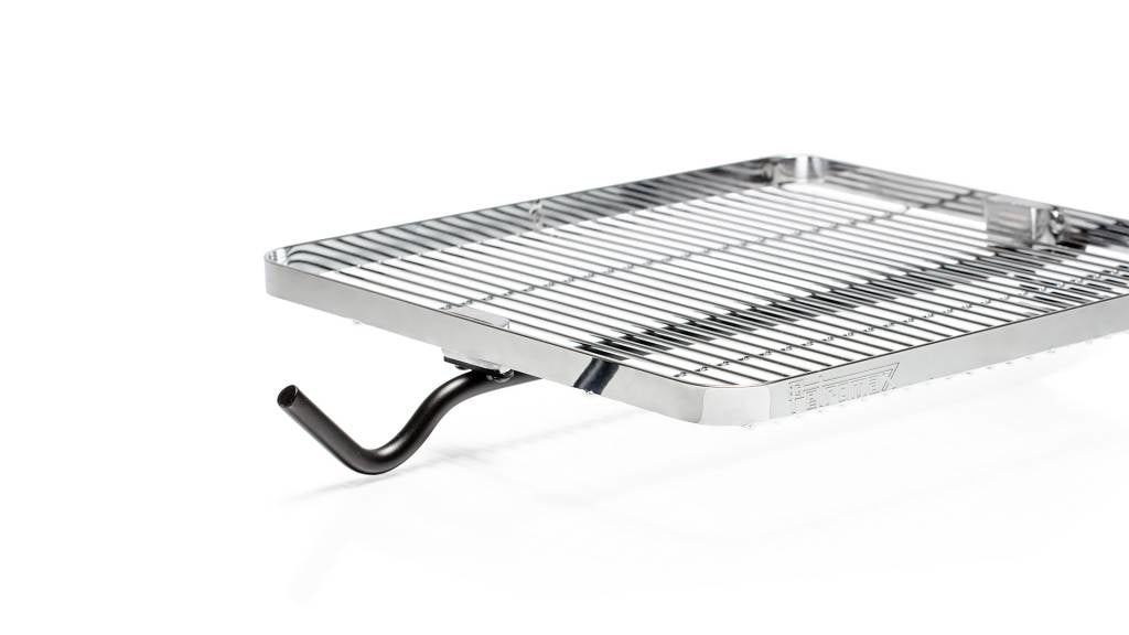 Dankzij de drie verstelbare armen kook je precies zoals jij dat wilt. Hang een Dutch Oven tot maat FT6, verwarm water in een theeketel of grill vlees en groenten op het verchroomde grillrooster met opstaande rand. Extra inkepingen bieden ruimte voor handschoenen, tangen of extra kookgereedschap, zodat je jouw buitenkeuken volledig naar eigen hand zet.