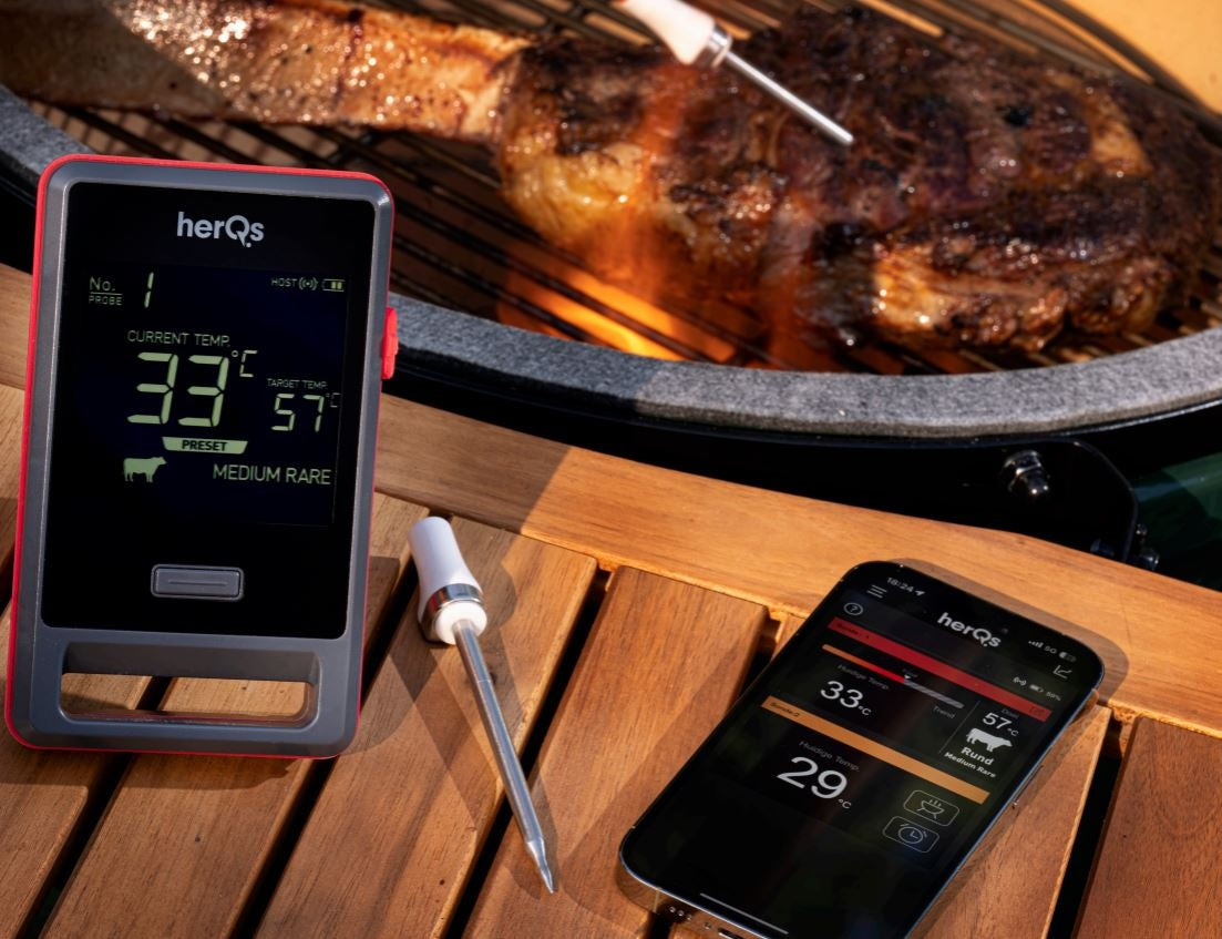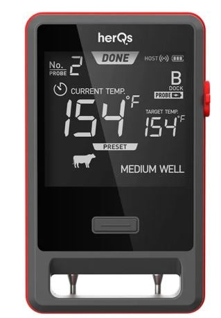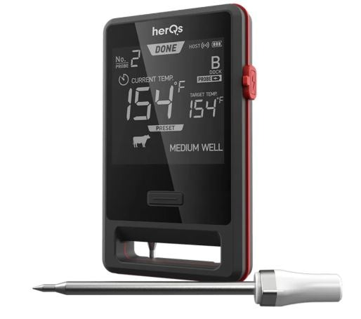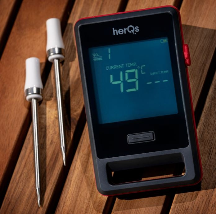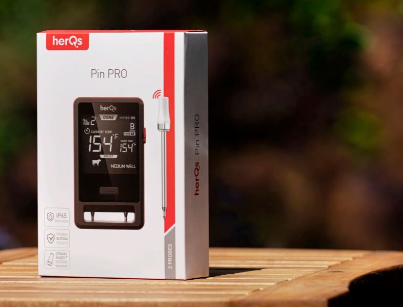 Met de HerQs Pin Pro haal je jezelf een enorm makkelijk te gebruiken vlees thermometer in huis die volledig draadloos is. De herQs Pin Probe is te verbinden met de HerQs App welke je  alle inzichten geeft die je wilt hebben wanneer jij je gerecht aan het bereiden bent. Uiteraard zijn er vooraf ingestelde waarden in de app waardoor je kunt aangeven welk stuk vlees je aan het bereiden bent en hoe jij de garing wilt hebben. De HerQs Pin Pro wordt standaard geleverd met 2 draadloze probes welke opgeborgen worden aan de achterkant. Hier worden ze tevens ook opgeladen. Neem de draadloze probes na gebruik met een vochtige doek af en plaatse ze terug aan de achterkant zodat de probes zichzelf opladen en klaar zijn voor een volgende bereiding.