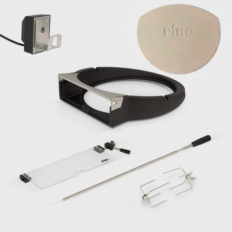 De PiRO JB Edition is speciaal ontwikkeld voor kamado’s van Kamado Joe, The Bastard en geselecteerde Grizzly Grills. Met deze complete set breid je je kamado eenvoudig uit met een rotisserie én pizza-opstelling, zodat je nog veelzijdiger kunt barbecueën. De PiRO wordt standaard geleverd met een pizzasteen, een draaispit inclusief spitmotor, twee spitvorken en duidelijke veiligheids- en gebruiksinstructies.