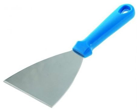 Pizza spatel van rvs met kunststof handvat. De afmeting van het rvs-gedeelte van de spatel is 11 x 10 cm. Handig om je pizzadeeg te portioneren in deegbolletjes.