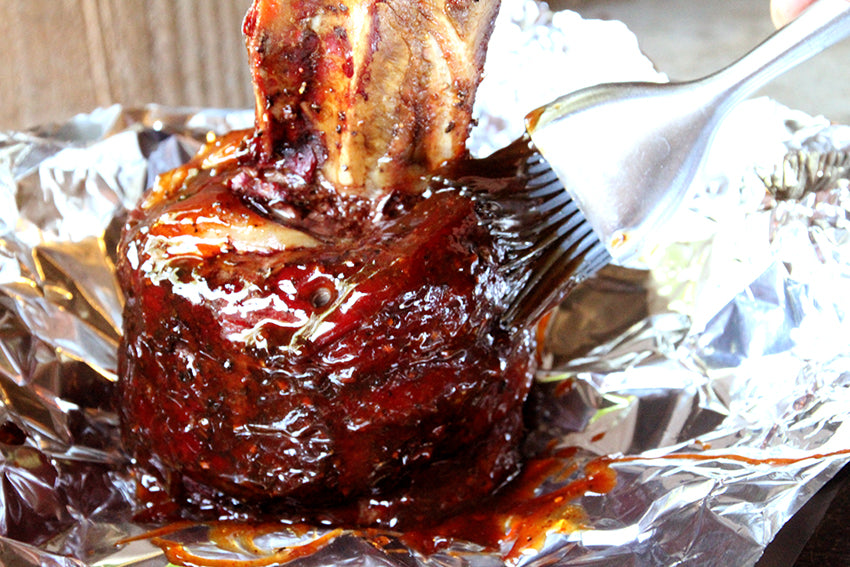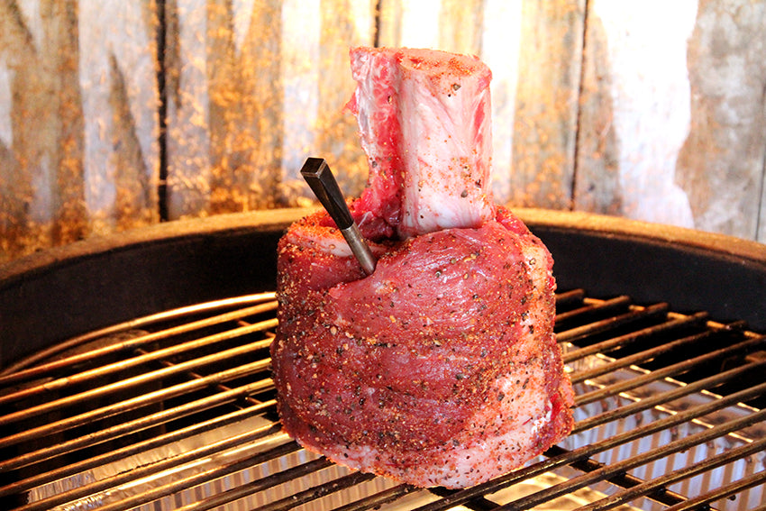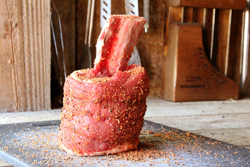Kruid de lolly eerst met je favoriete rub, bijvoorbeeld: Grate Goods Beef or Steak.