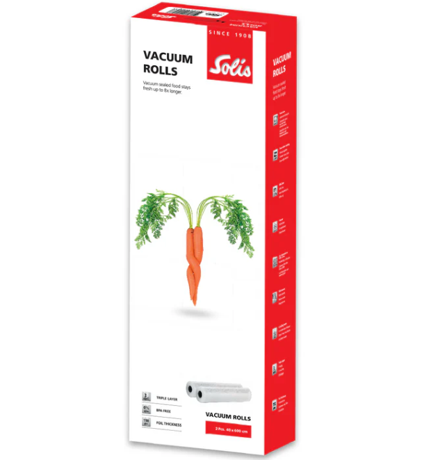 Gebruik je vacuümrollen in plaats van standaard zakken? Dan bepaal je zelf het formaat, helemaal afgestemd op wat jij nodig hebt. En dankzij het duurzame, herbruikbare materiaal geef je ook nog eens minder plastic uit handen.