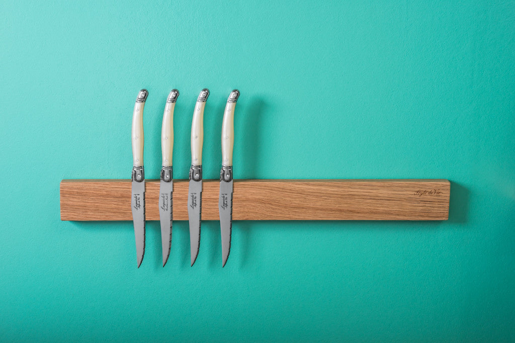 Prachtig magnetisch messenrek vervaardigd uit eikenhout voor het ophangen van 8 tot 11 koksmessen. Dit messenrek is uitsluitend voor montage aan uw wand. Het messenrek heeft een lengte van 50 cm en een hoogte van 5 cm.