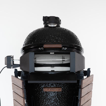 Maak je Bastard nog veelzijdiger met de Rotisserie Oven, een perfecte toevoeging voor zowel rotisserie als pizza-ovengerechten. Dankzij de handige deur aan de voorkant blijft de dome goed gesloten, waardoor je het vuur optimaal kunt opstoken en de warmte efficiënt vasthoudt.