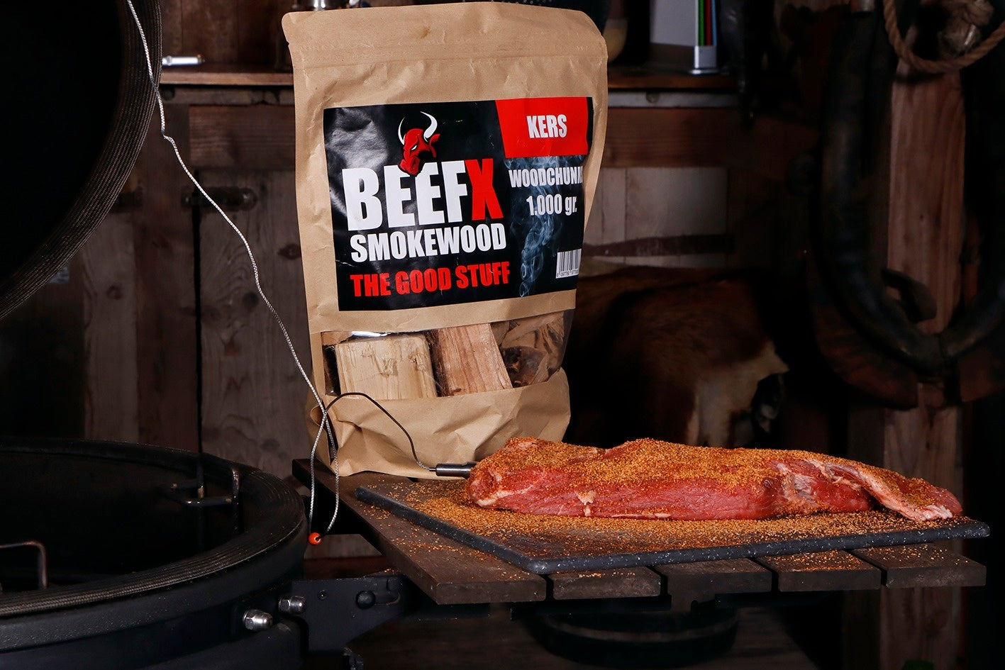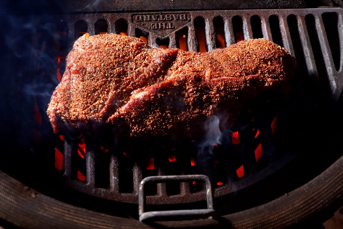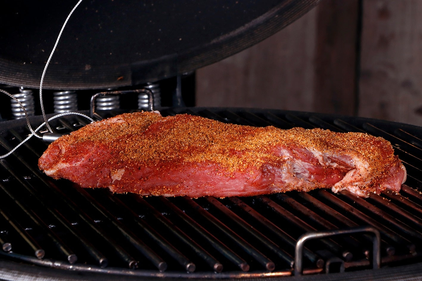 Begin met indirect grillen op 150°C tot een kerntemperatuur van 49°C. Grill het daarna direct boven hete kolen om een krokante korst te creëren. Voor medium-rare mik je op een eindtemperatuur van 54°C.
