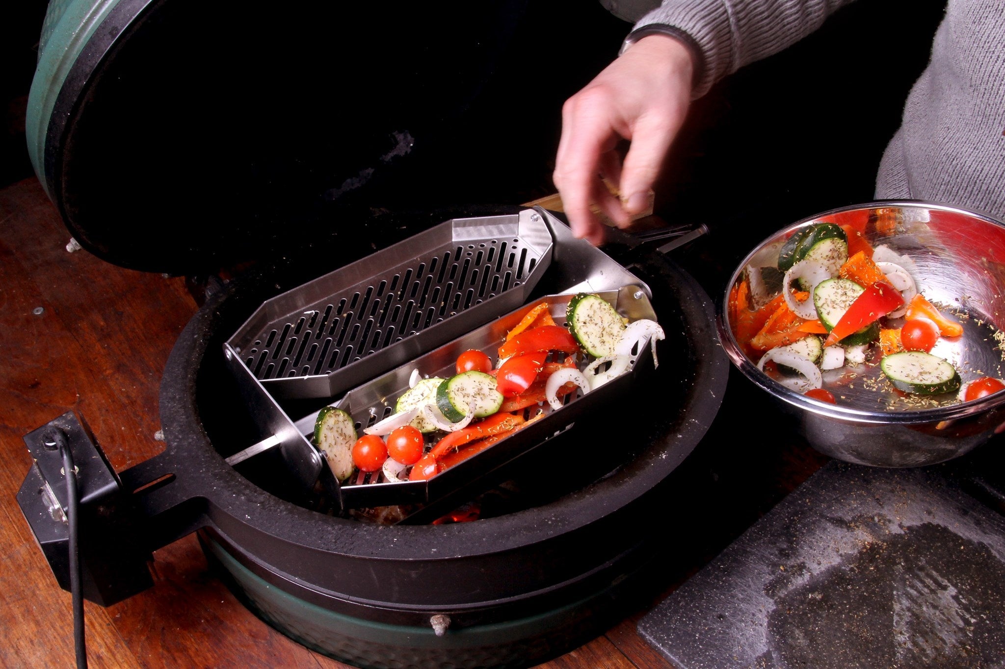 manden krijgen binnen de gesloten barbecue. Hierdoor krijgt het eten een egale garing. Je spareribs zijn binnen 3 uur gaar bijvoorbeeld.