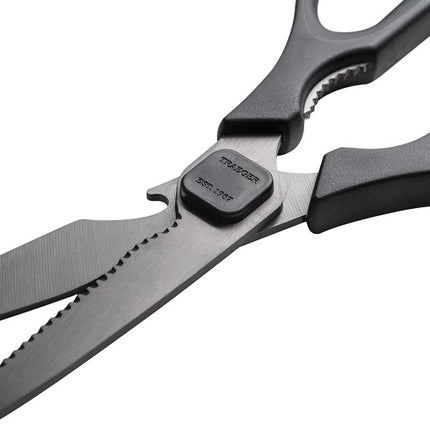 Stop met worstelen met zwakke scharen en geef je vlees de aandacht die het verdient met de Traeger BBQ Shears. De titanium gecoate messen snijden moeiteloos door huid en bot, en de scharen kunnen makkelijk uit elkaar worden gehaald voor een grondige reiniging. Bovendien heeft de schaar een ingebouwde flesopener om de koude drankjes binnen handbereik te houden.