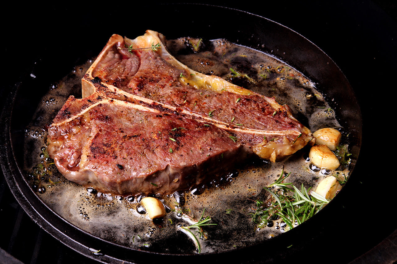 De T-Bone Steak is het beste wanneer het snel en op hoge temperatuur wordt gegrild. Kruid de steak eenvoudig met zeezout en versgemalen zwarte peper. Verhit de BBQ goed en grill de steak 3-4 minuten per kant voor een perfect rosé resultaat. Wil je de T-Bone iets meer doorbakken? Voeg dan wat extra tijd toe aan de grilltijd.