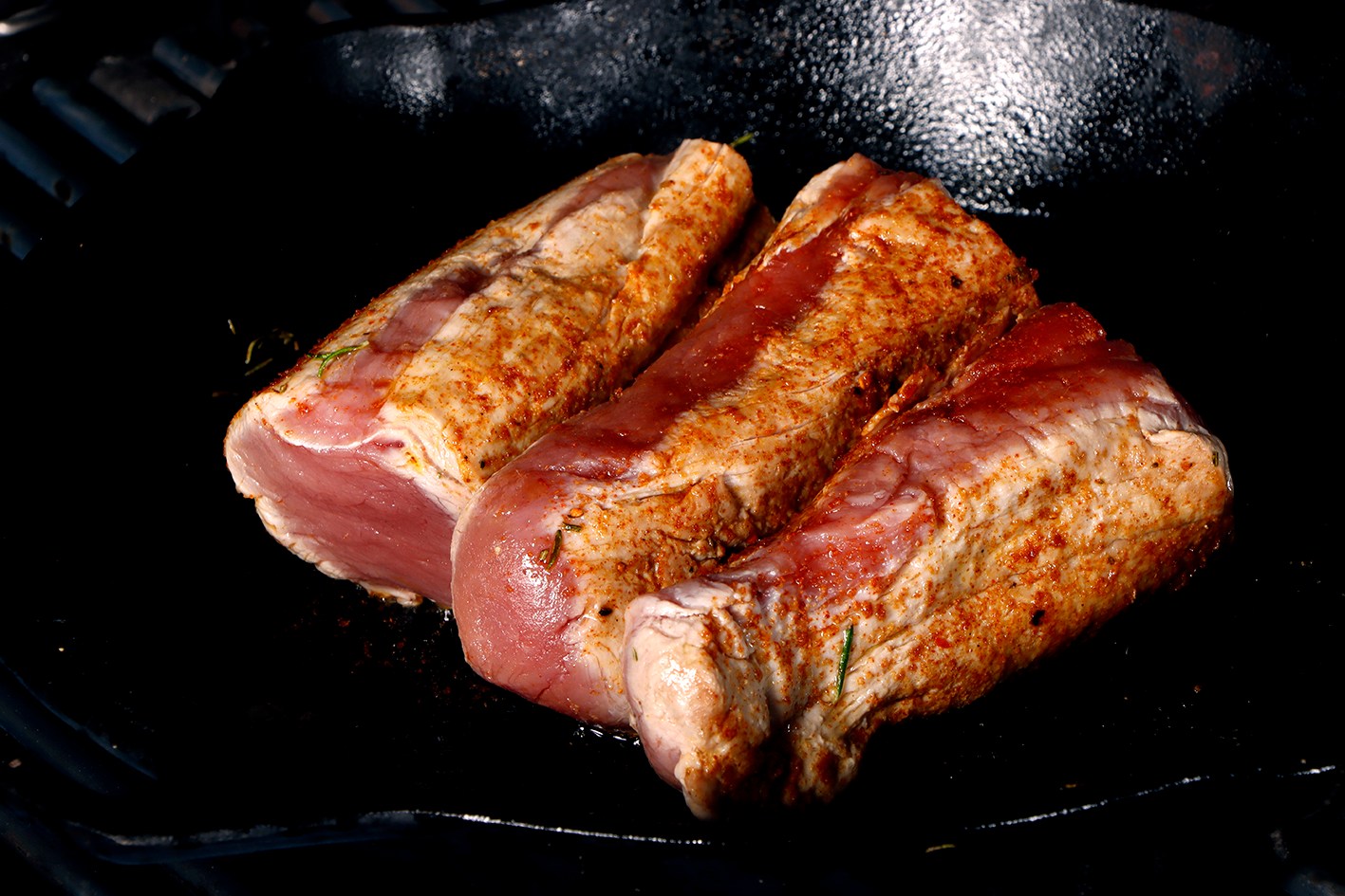 1. Marineren: Meng in een kom de olijfolie, knoflook, tijm, rozemarijn, zout en peper. Wrijf de wildzwijn filet in met het mengsel en laat minimaal 1 uur marineren (bij voorkeur een paar uur in de koelkast).