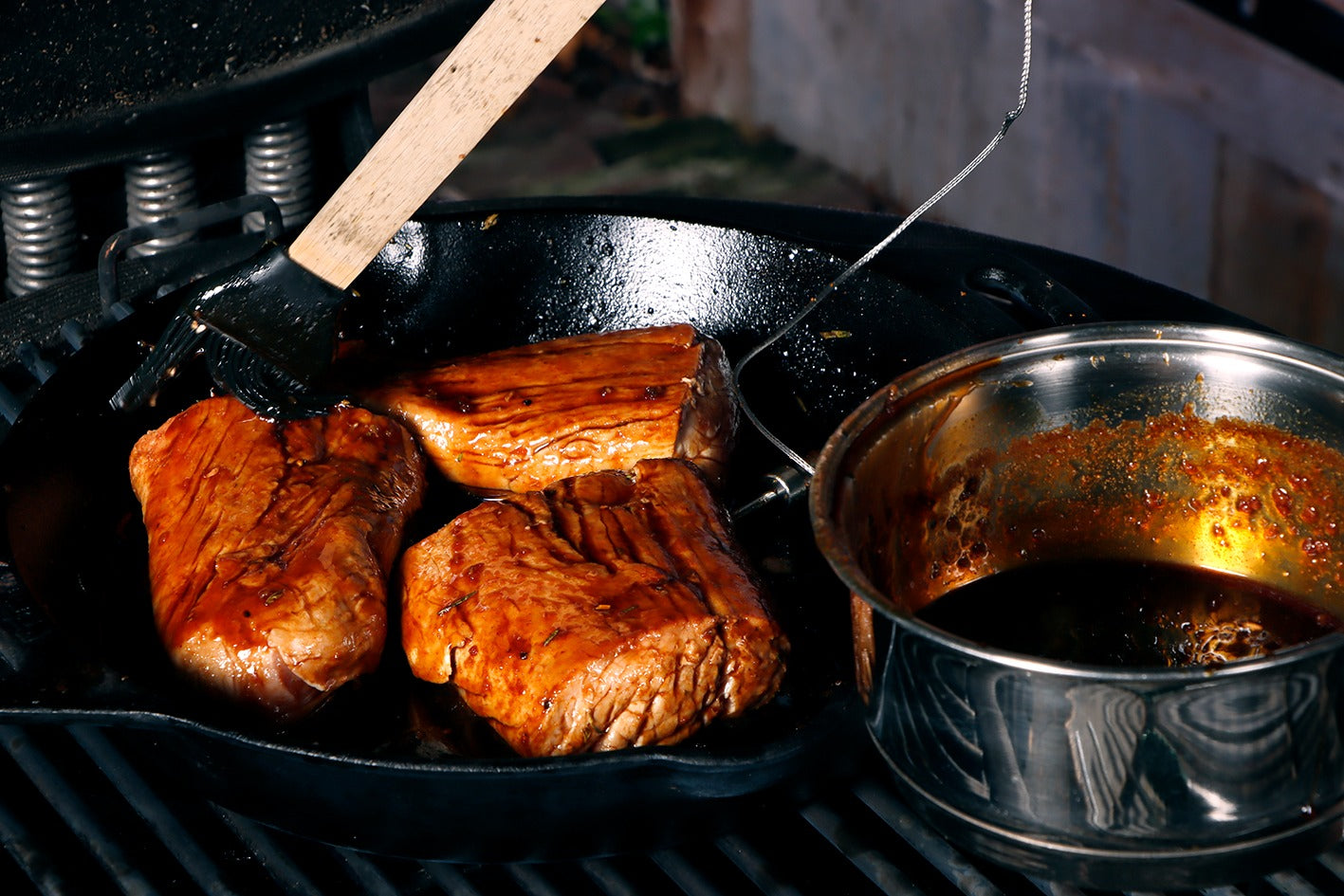 3. Grillen: Leg de wildzwijn filet op de barbecue en grill deze ongeveer 4-6 minuten per kant, afhankelijk van de dikte. Gebruik een vleesthermometer om de kerntemperatuur te controleren: voor medium rare is 55-57 °C ideaal.