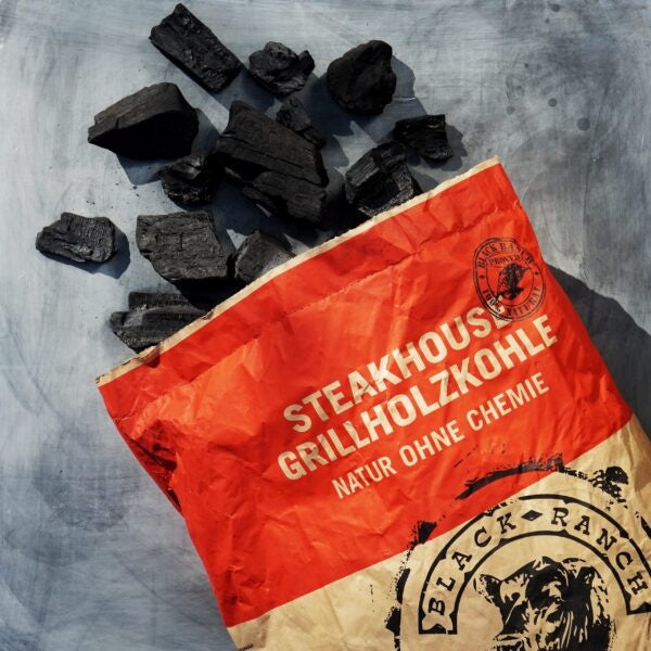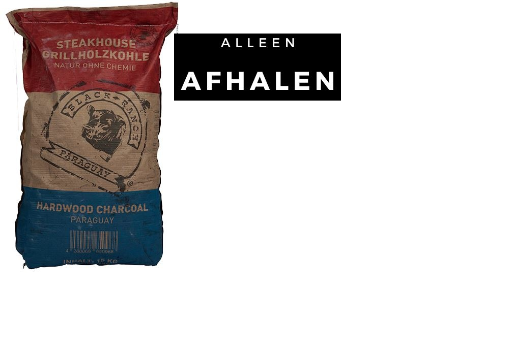 Black Ranch houtskool zak 15 kilo. Black Ranch houtskool, is een hoge kwaliteit, hoog-calorisch houtskool. Het is op plantaardige basis en geproduceerd uit het hout van de quebracho (steeneik) boom. Dit hardhout is zeer dicht van struktuur, waardoor de plantaardige houtskool een zeer hoge brand waarde heeft die wordt weerspiegeld in de duur van de verbranding en de hoge temperaturen. Argentijns hardhoutsoort van de Quebracho boom. Het komt uit het Spaans: 'Quiebra Hacha': 'Breekt de bijl'.